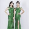 Cho thuê váy dài sequine xanh lá