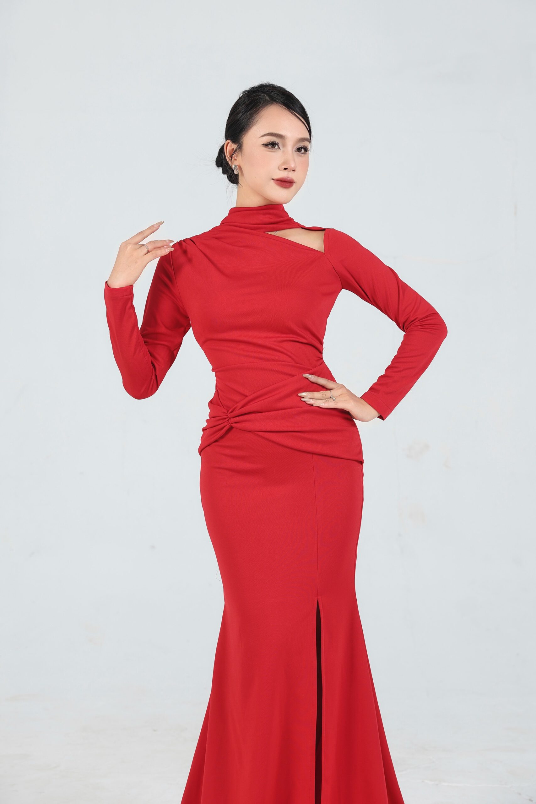 Váy dạ hội đỏ dài tay