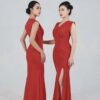 Váy dạ hội kim sa đỏ lệch vai